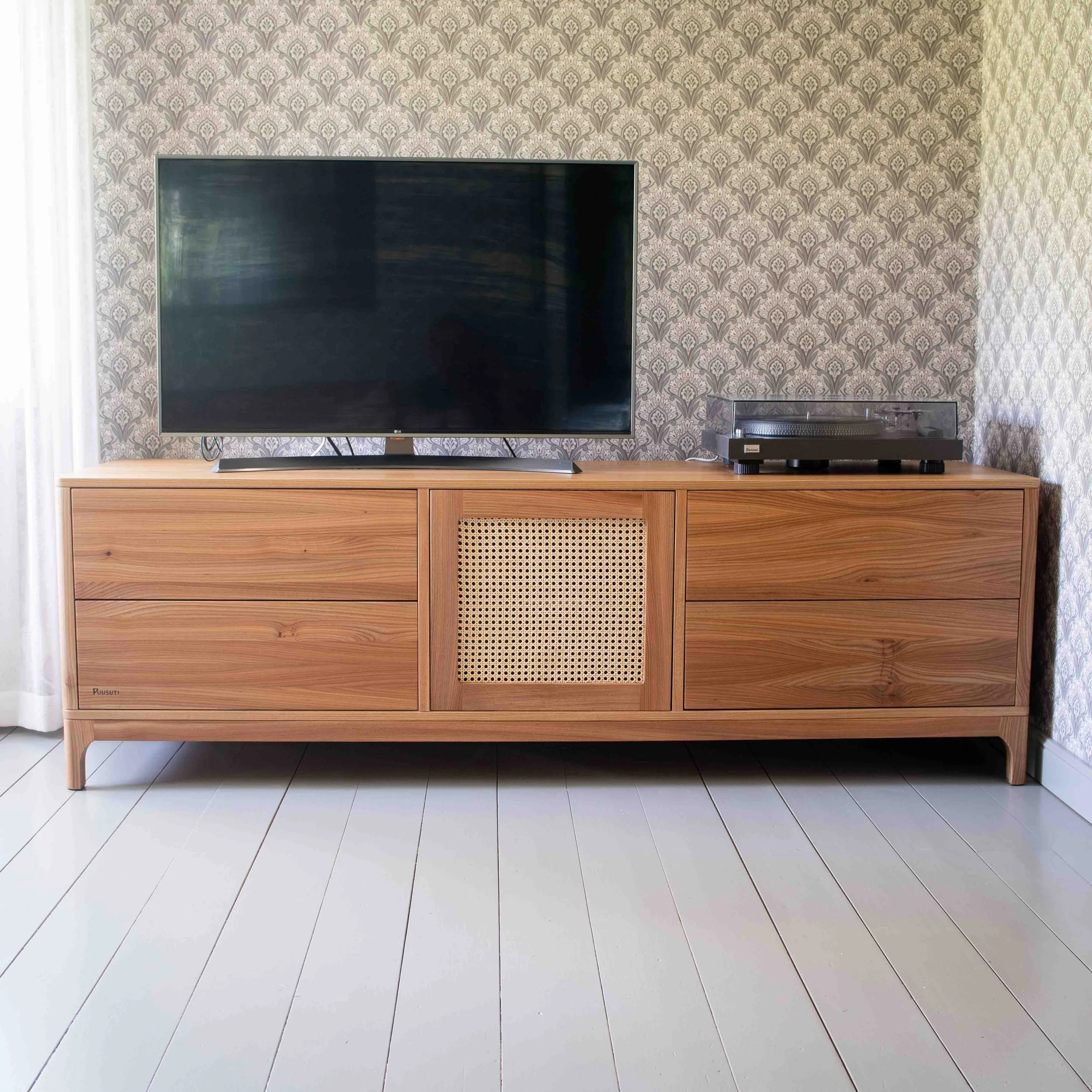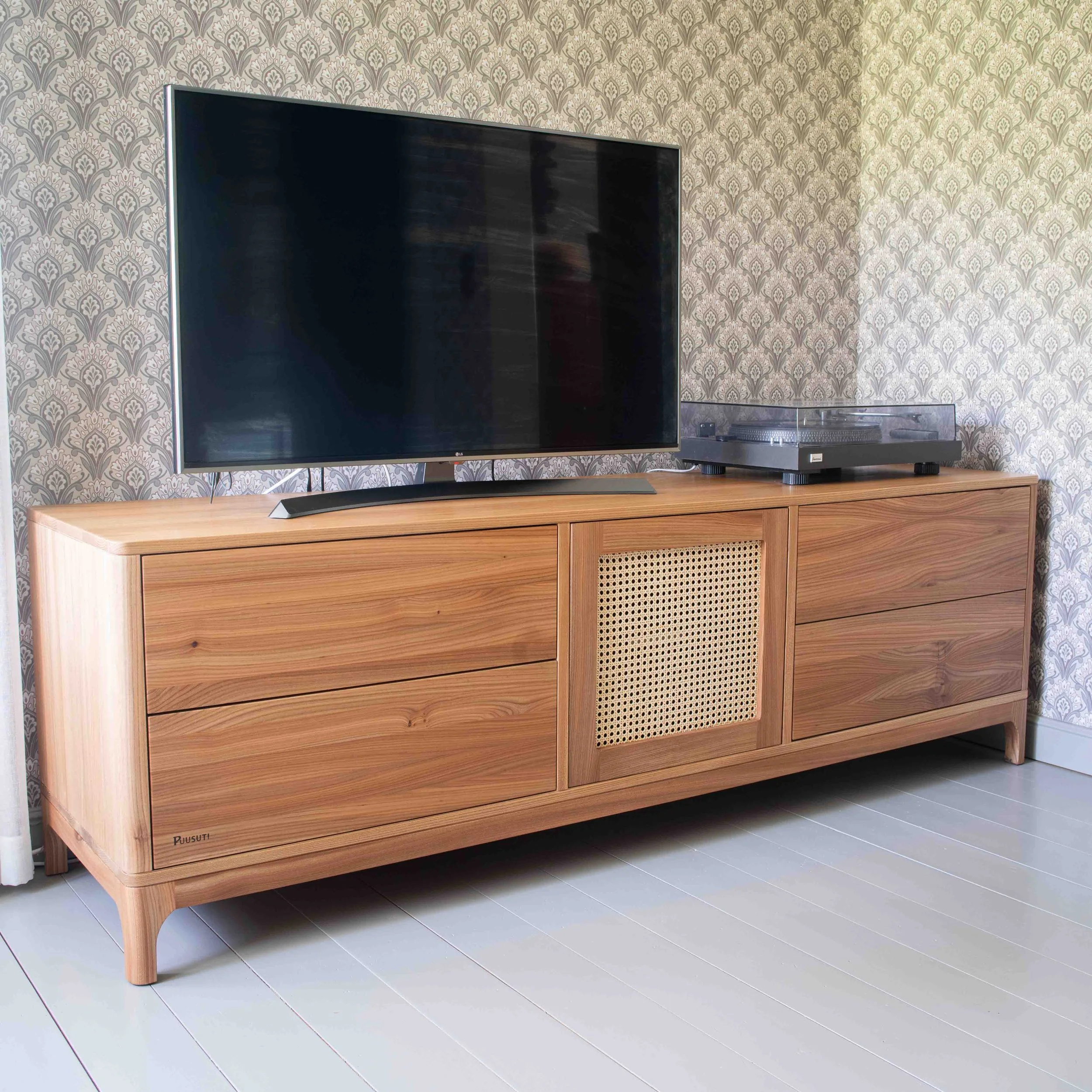 Tyylikäs ja käytännöllinen TV-taso kätkee sisäänsä vinyylikokoelmasi tai vaikka valokuvamuistosi. Tason muotoon on haettu vaikutteita muista Luannikas-tuoteperheen jäsenistä ja ne sopivat keskenään hyvin yhteen. TV-taso on ovia myöten massiivipuuta ja se taipuu moneen käyttötarpeeseen aina TV-tasosta liinavaatekaapiksi. Taso tehdään aina mittatilauksena asiakkaan tarpeiden mukaan. Luannikas-tuoteperheen kaikki tuotteet on valmistettu perinteistä puusepäntyötä kunnioittaen ja puun kosteuseläminen huomioiden.